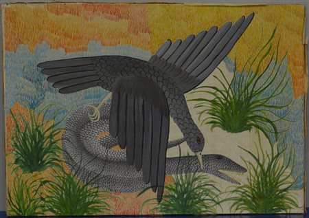 Pilipili Mulongoy "Senza titolo" tecnica mista su tela applicata su tavoletta c