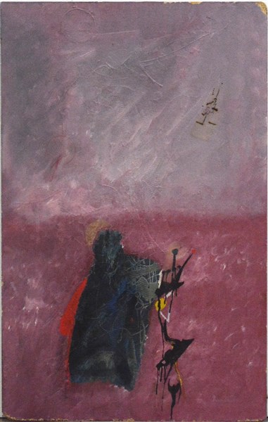 Sergio Dangelo "Blue Brea Valley" olio su faesite cm 111x70 firmato in basso a