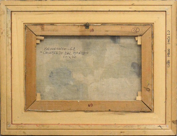 Felice Canonico "Chiamando dal monte" 1962 tecnica mista su tela cm 40,5x59,5 fi