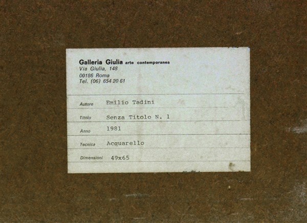 Emilio Tadini "Acquerello n.1" 1981 acquerello su carta cm 49x64,5 Firmato in ba