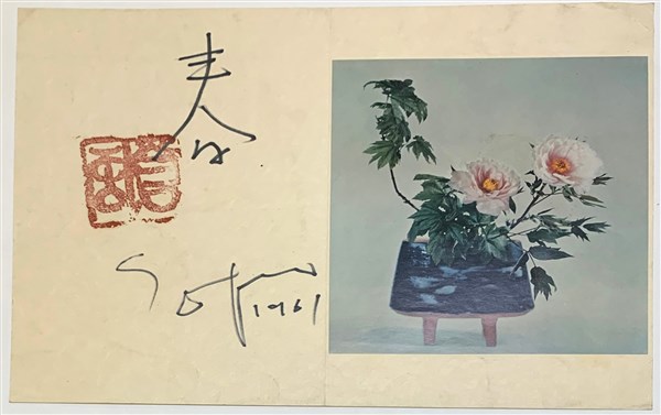 Sofu Teshigahara Biglietto di auguri con collage, firmato e datato 1961aperto