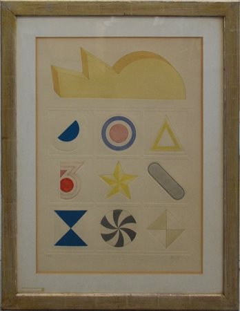 Lucio del Pezzo "Senza titolo" acuaforte a colori - prova d'artista cm 66x47 fi