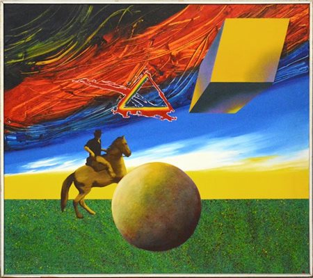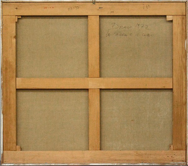 Drago "La sfera e il cubo" 1972 acrilico su tela cm 94x106 firmato e datato in a