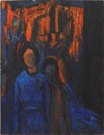 firmato e datato in basso a destra; studio di figura dipinto al retro (difetti)