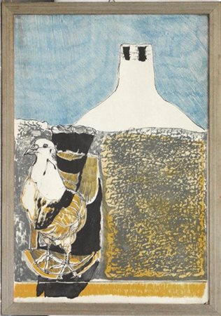 Luigi Guerricchio "Colombo e camino" 1970 litografia a colori cm 70x50 numerata