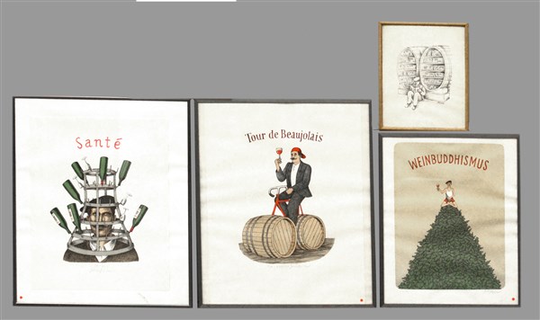 Jiri Sliva Lotto composto da tre litografie a colori sul tema del vino e una chi