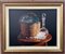 Giuseppe Carta "Composizione con cesto e bottiglia" 2005 olio su tela cm 35x45 f