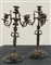 Coppia di candelieri in metallo cesellato a quattro fiamme fusto a forma femmin