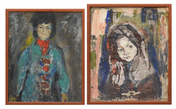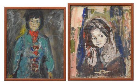 Lotto di due dipinti ad olio su tela raffiguranti "Figure femminili" misure diverse, in cornici