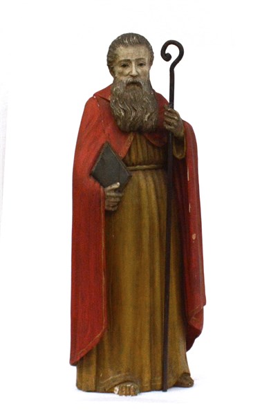 Scultura in legno dipinto raffigurante San Giuseppe (h cm 80) (difetti)