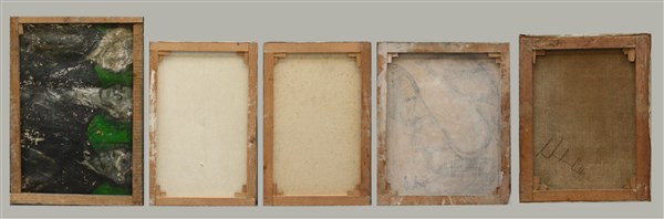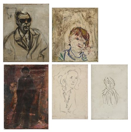 Lotto di cinque dipinti ad olio su tela raffiguranti "Figure" misure diverse