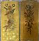 Coppia di pannelli in legno di forma sagomata decorati in policromia su entramb