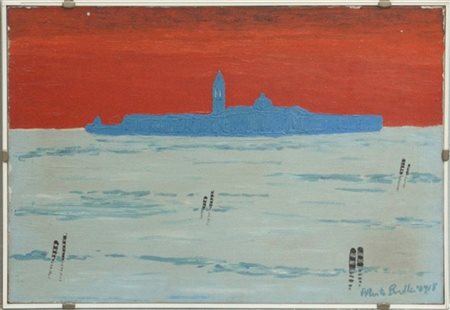 Firma indecifrata "Laguna veneta" 1968 olio su tela (cm 35x50) firmato e datato in basso a destra, in cornice