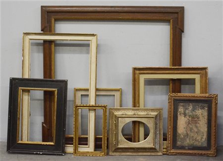 Gruppo di otto cornici di fattura, epoche e dimensioni differenti (difetti)