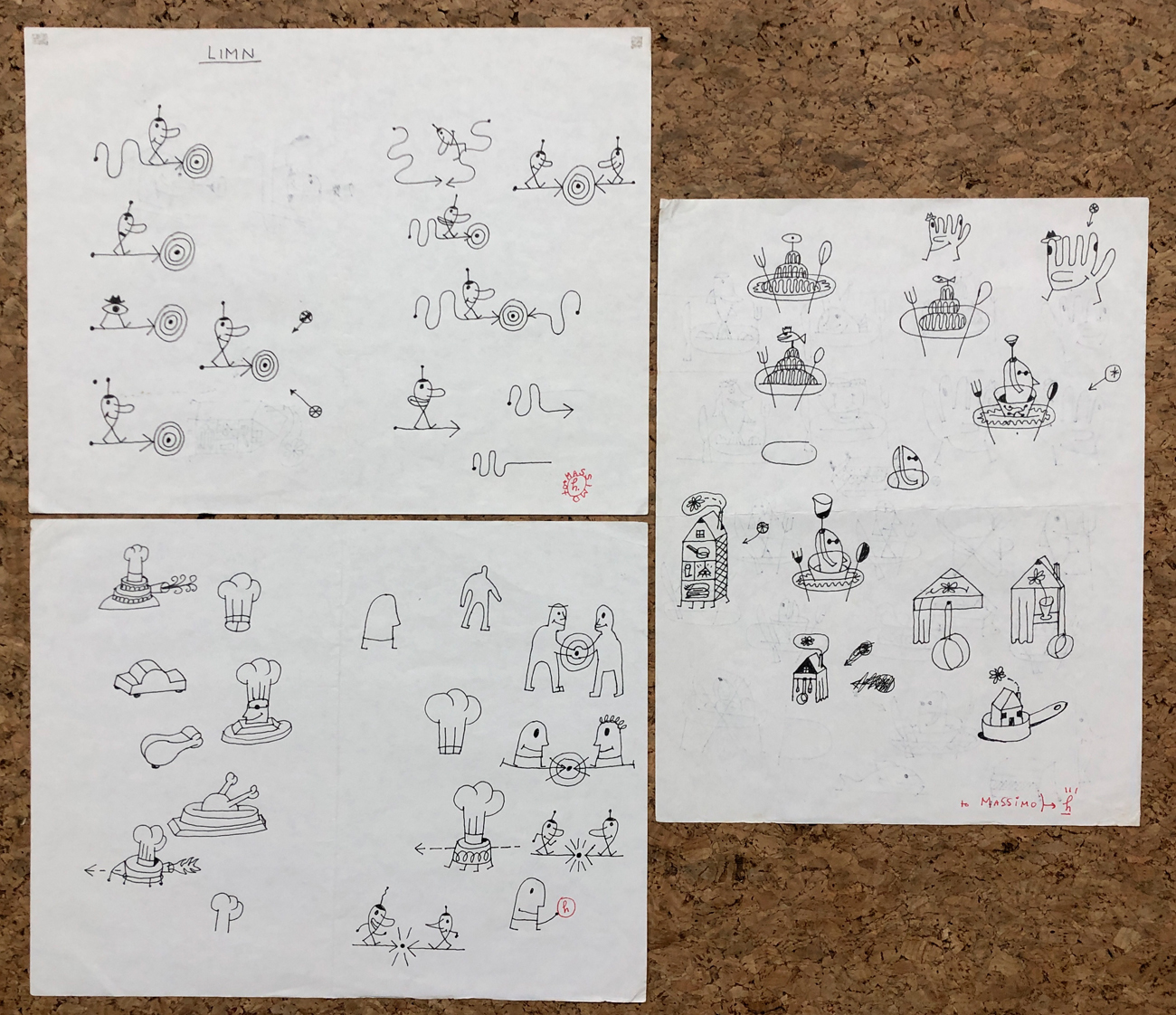 Lotto unico composto da 3 pennarelli su carta 2 dei quali dipinti sia al fronte che al retro