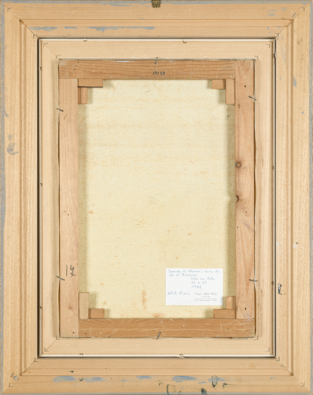 Etichetta dell'Artista con caratteristiche tecniche dell'opera al retro