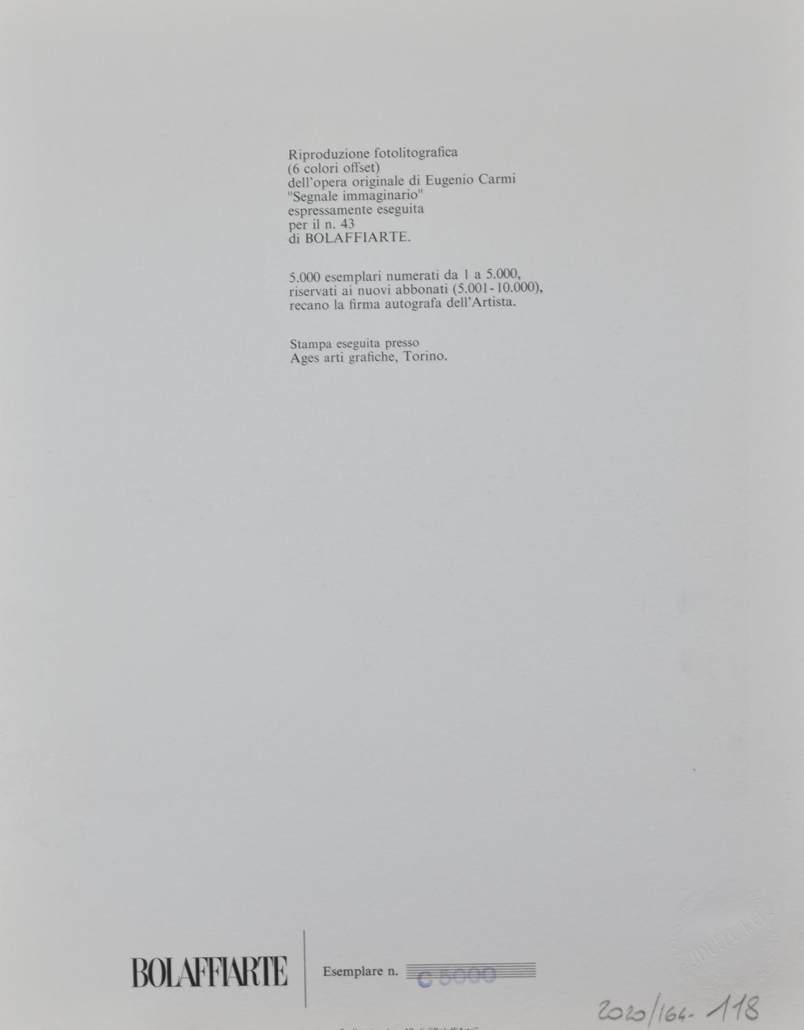 Eugenio Carmi SEGNALE IMMAGINARIO riproduzione fotolitografica su cartoncino,...
