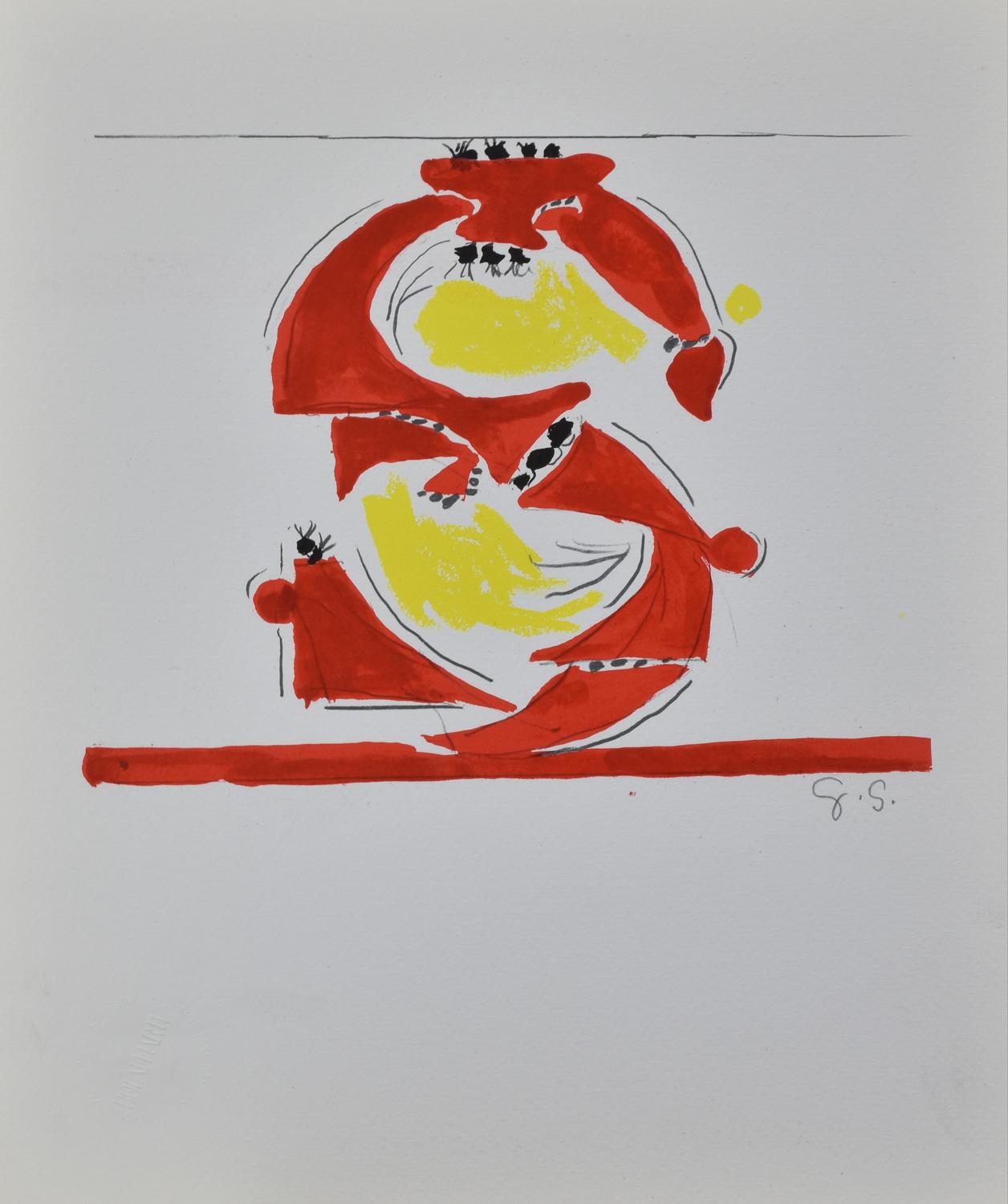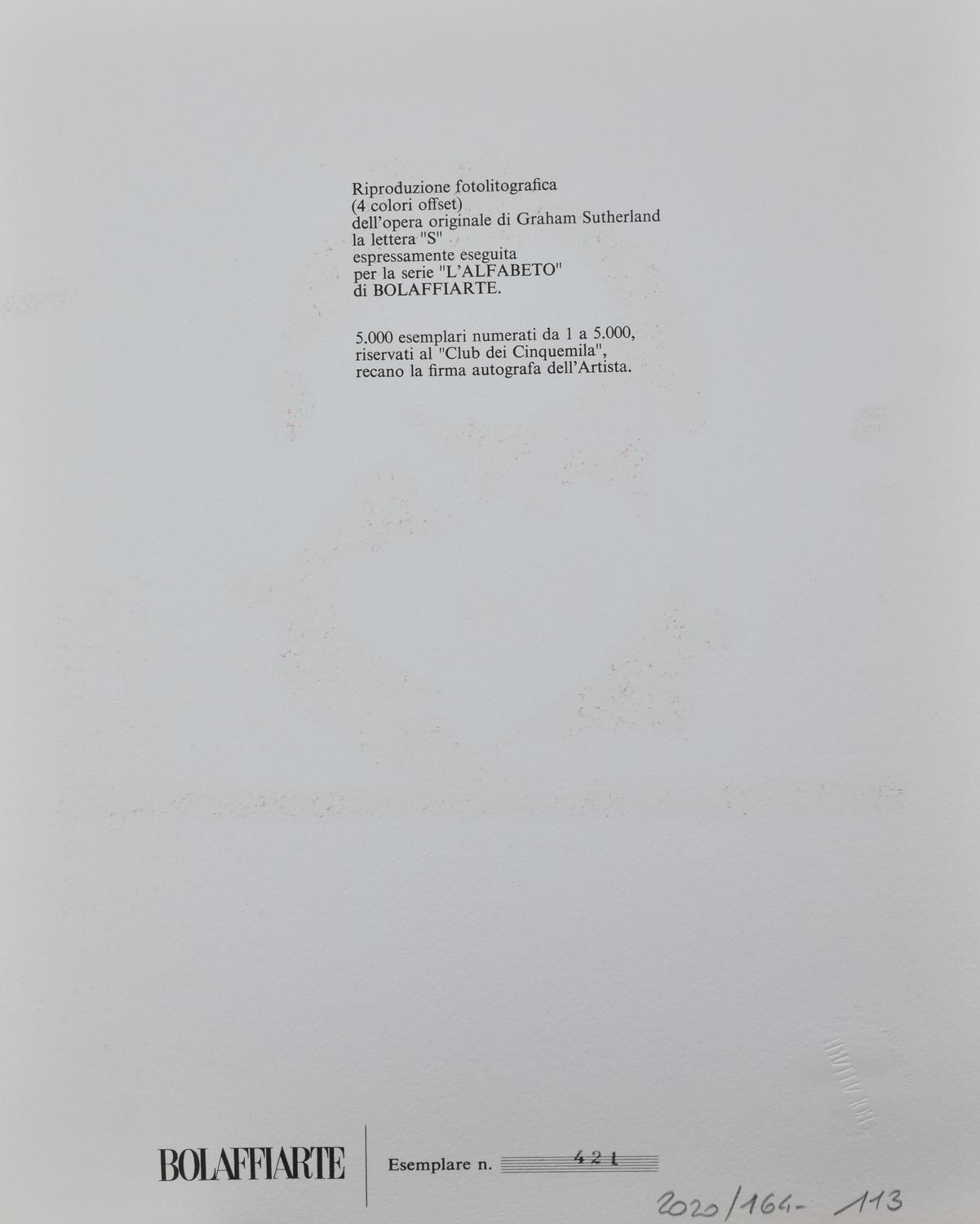 Graham Sutherland LETTERA S riproduzione fotolitografica su cartoncino, cm...