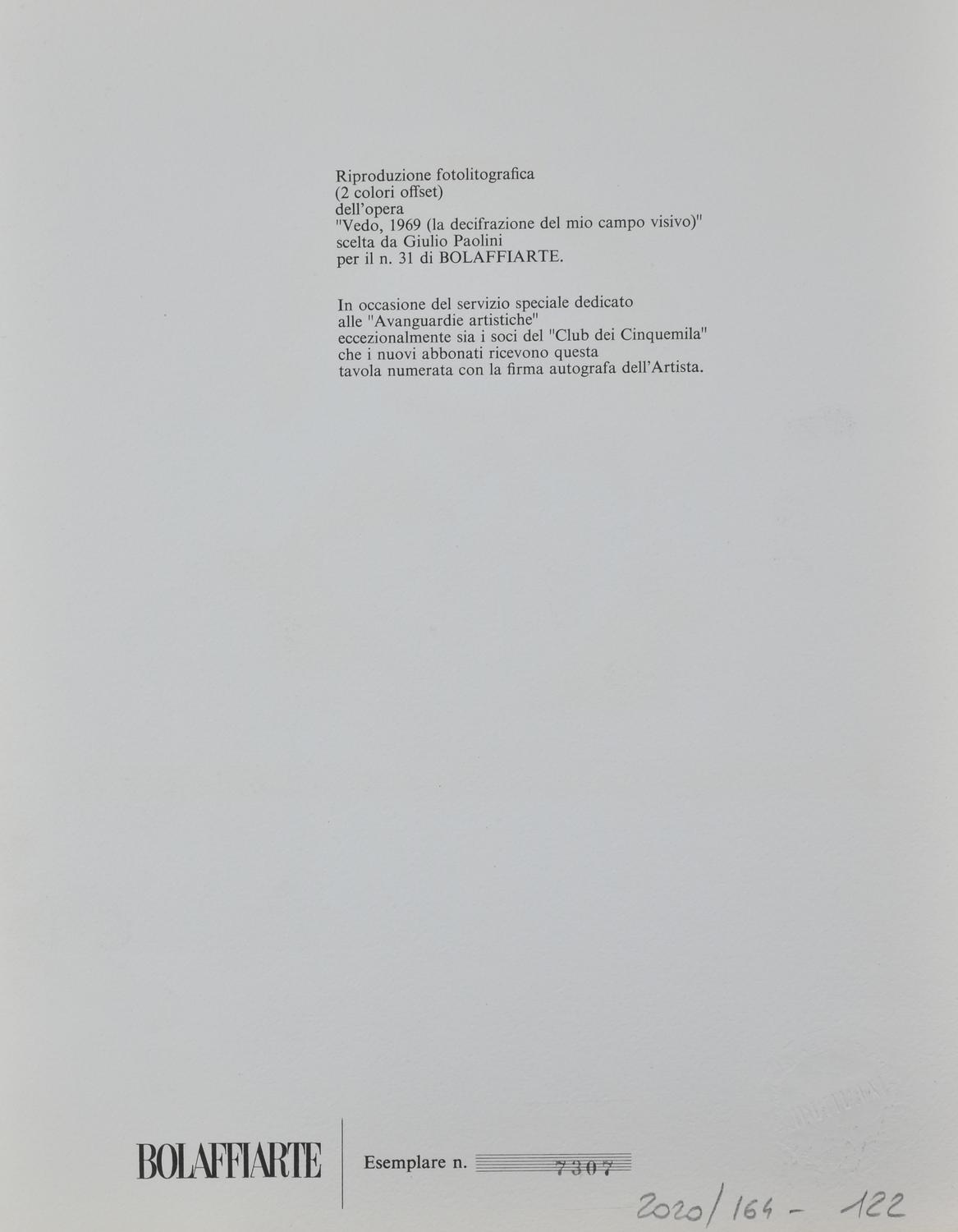 Giulio Paolini VEDO, 1969 (LA DECIFRAZIONE DEL MIO CAMPO VISIVO) riproduzione...