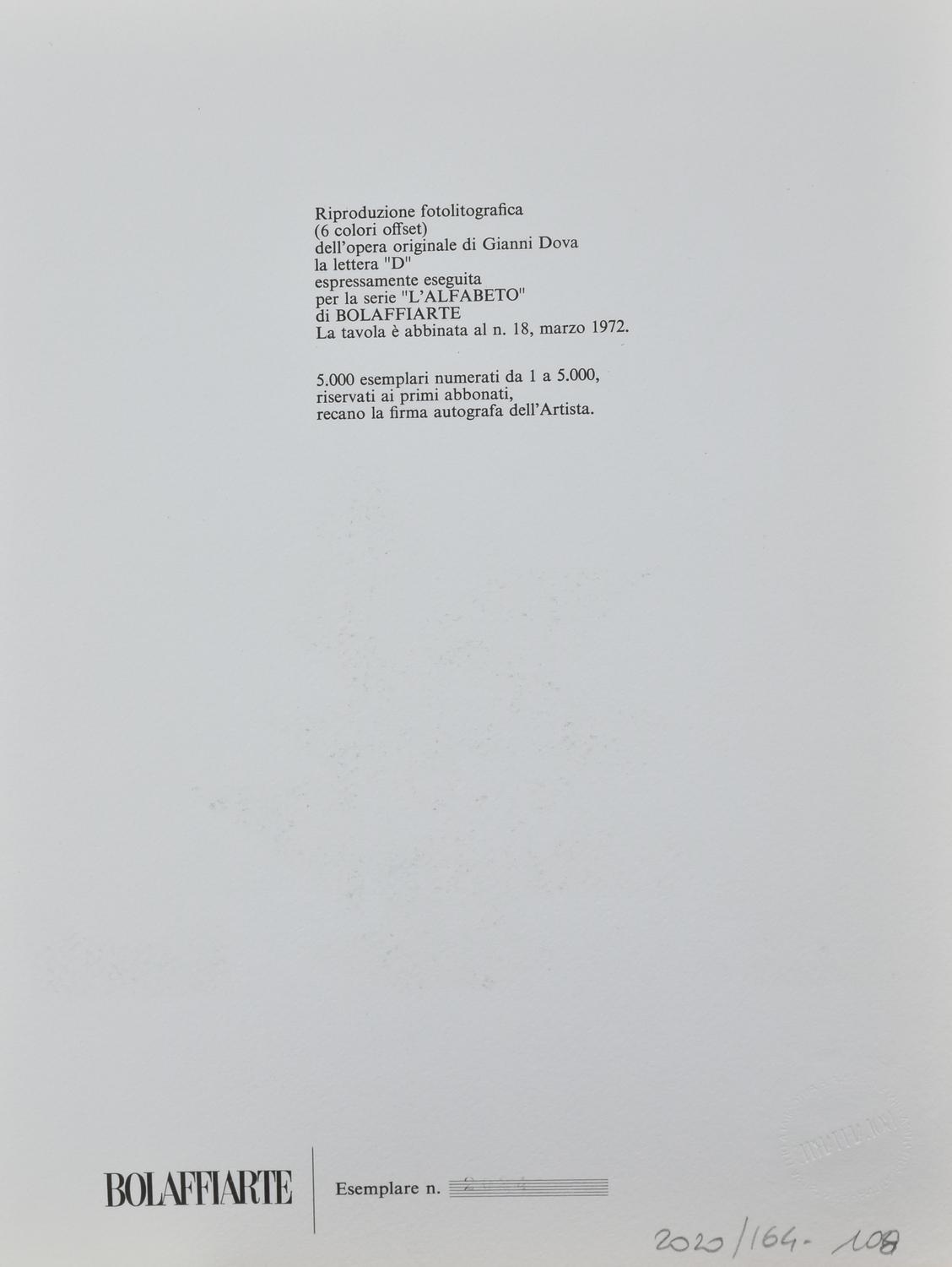 Lotto 22 | Gianni Dova LETTERA D riproduzione fotolitografica su cartoncino, cm 30x23,5;...
