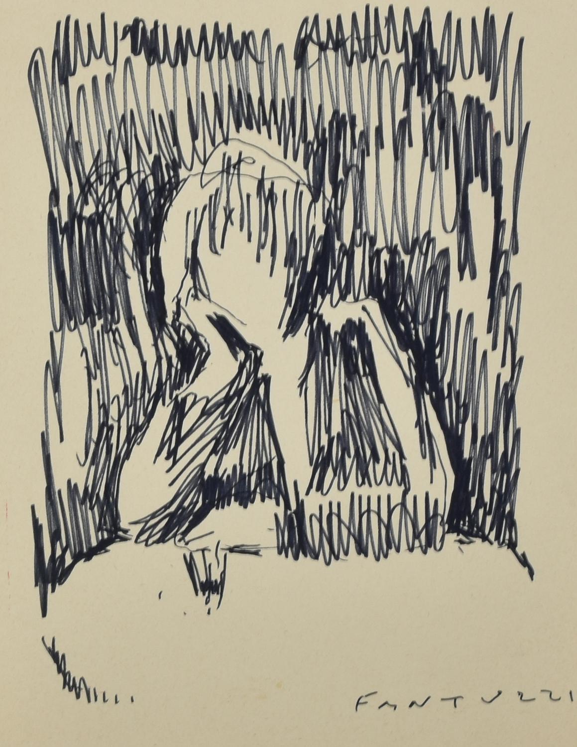 Eliano Fantuzzi DONNA AL BAR pennarello su cartoncino, cm 21x16 firma sul...