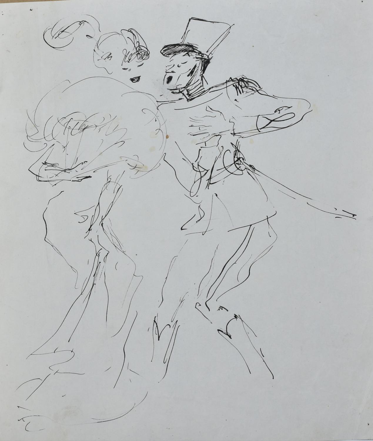 Leonardo Stroppa IL CAVALIERE E LA DAMA china su carta, cm 28x23 sul retro:...