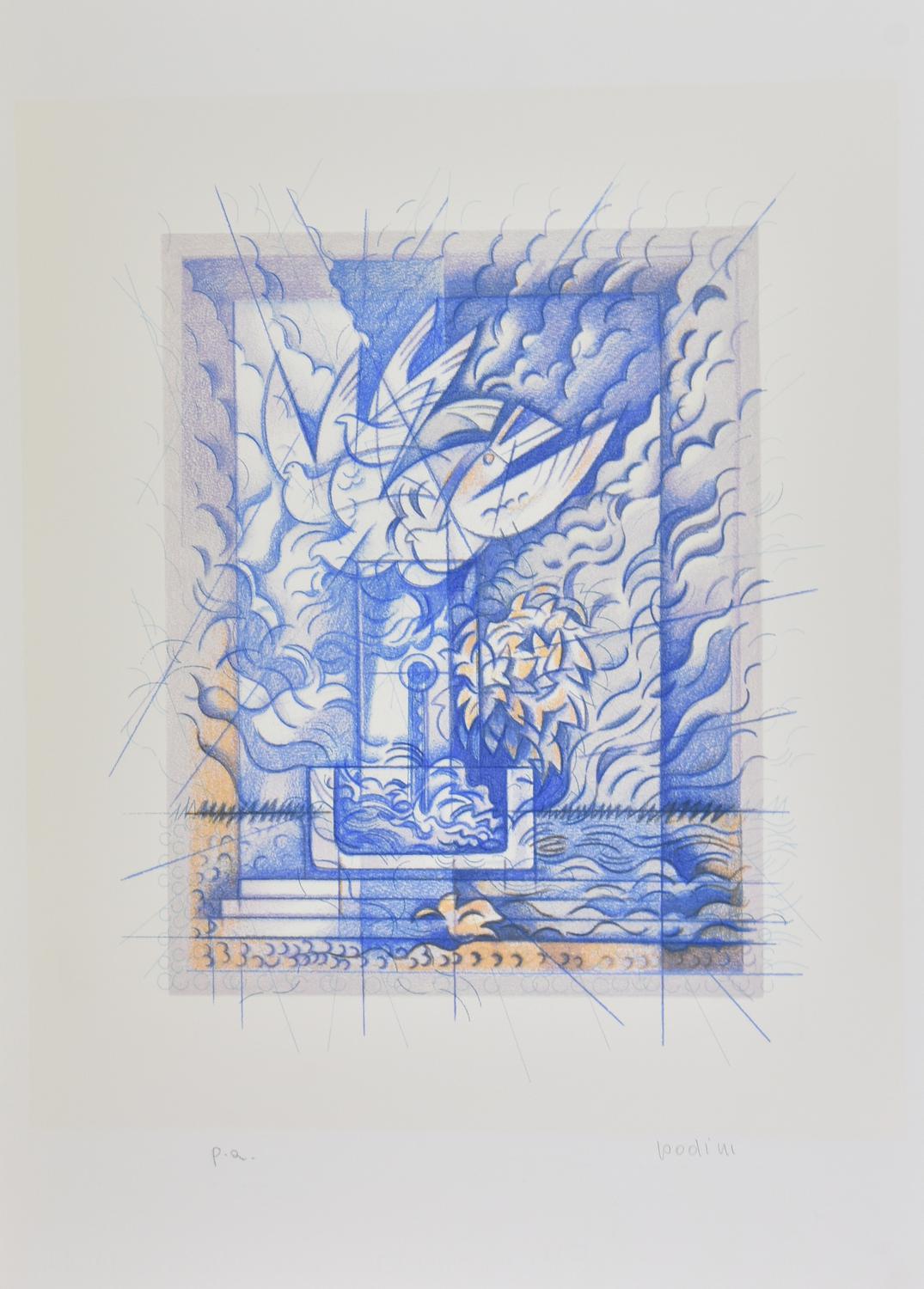 Floriano Bodini COLOMBE E FARO litografia su carta Fabriano, cm 70x50; es....