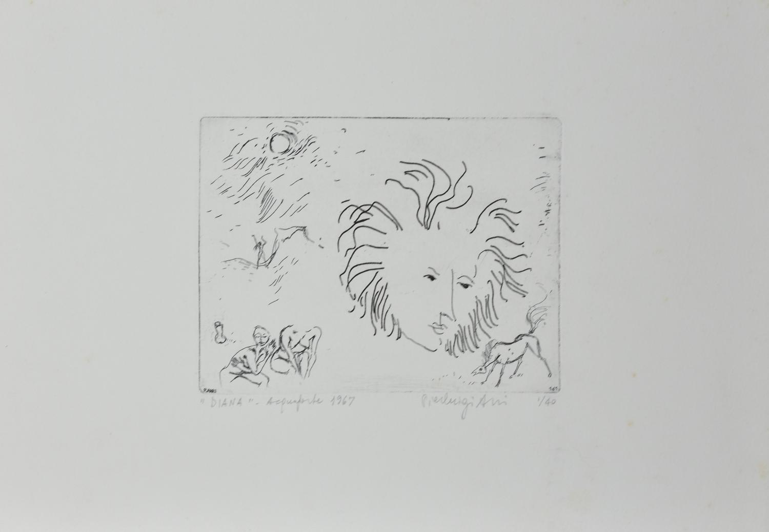 Pierluigi Arri DIANA acquaforte su carta, cm 24,7x35,4 (lastra cm 12,3x16,2)...