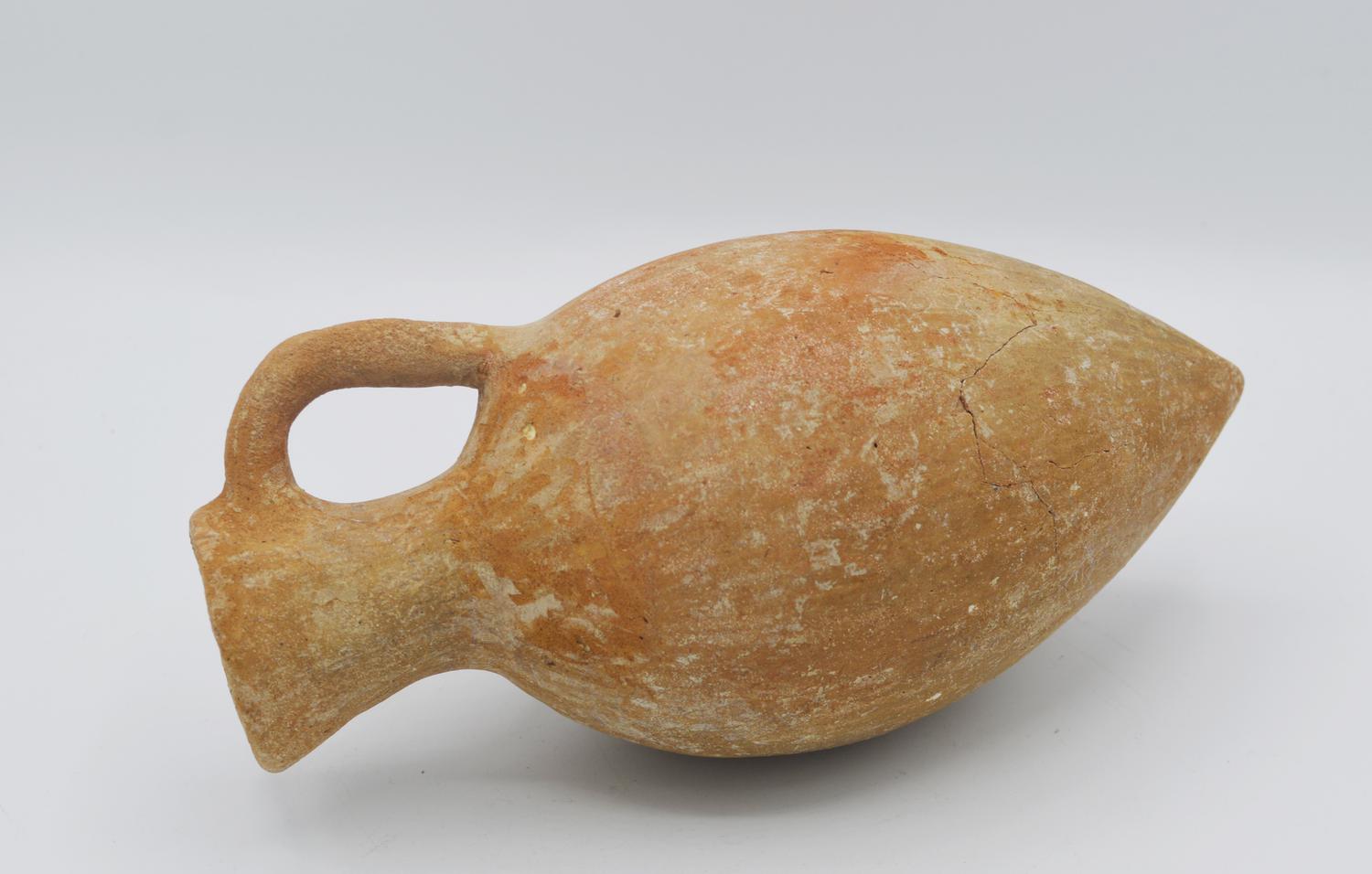 Alto labbro svasato distinto dal corpo ovoide appuntito inferiormente; piccola ansa a bastoncello impostata dal collo alla spalla.