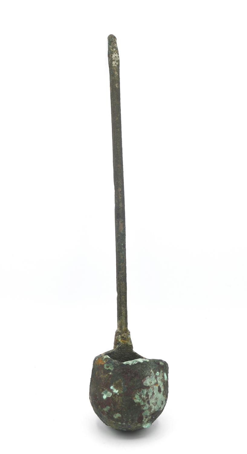 Attingitoio formato da un manico in verga di bronzo ritorta all'estremità superiore ed un corpo cilindrico in lamina di bronzo.