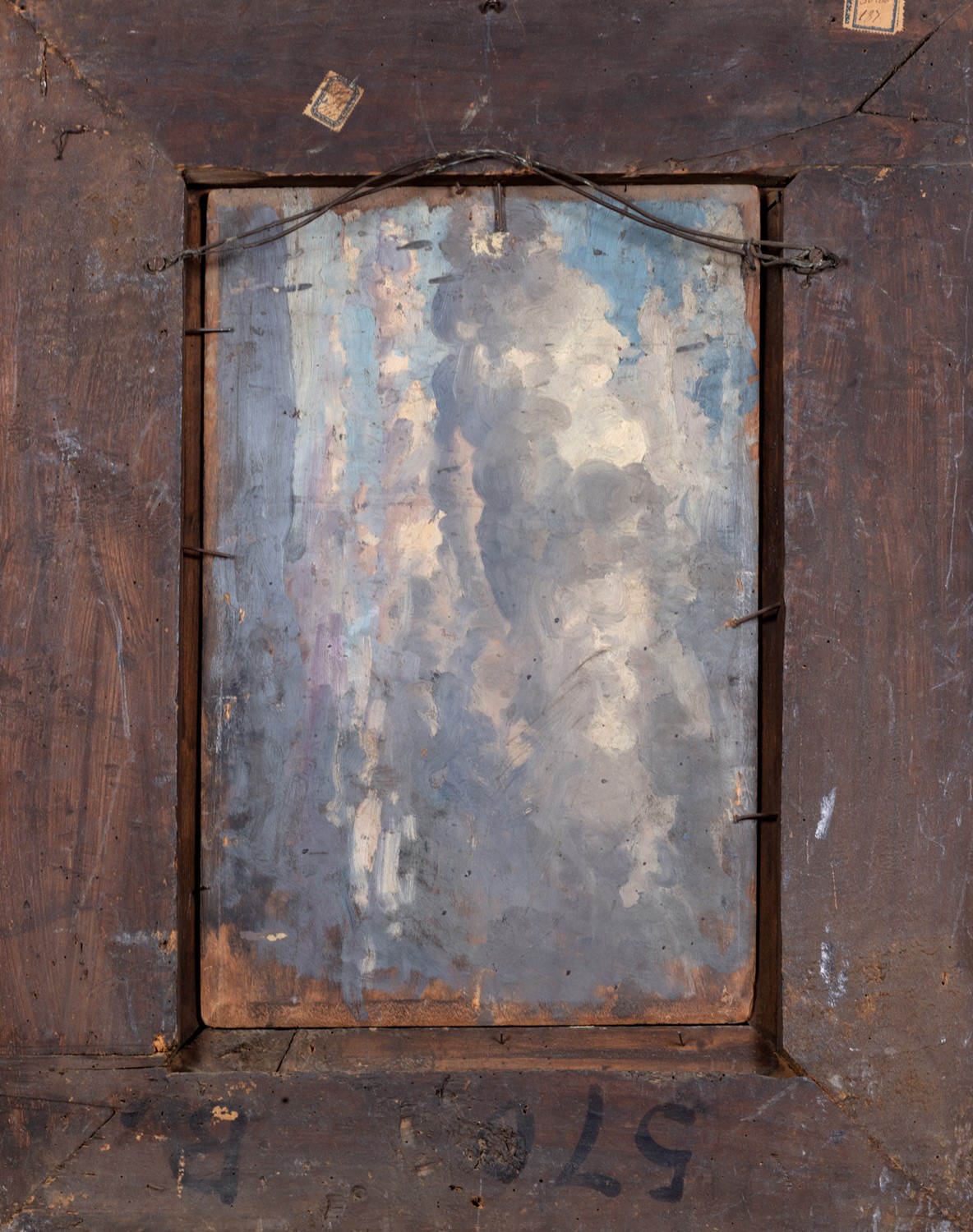 Sul retro: studio per cielo e nuvole; sulla cornice, antichi cartellini manoscritti con numeri di riferimento.