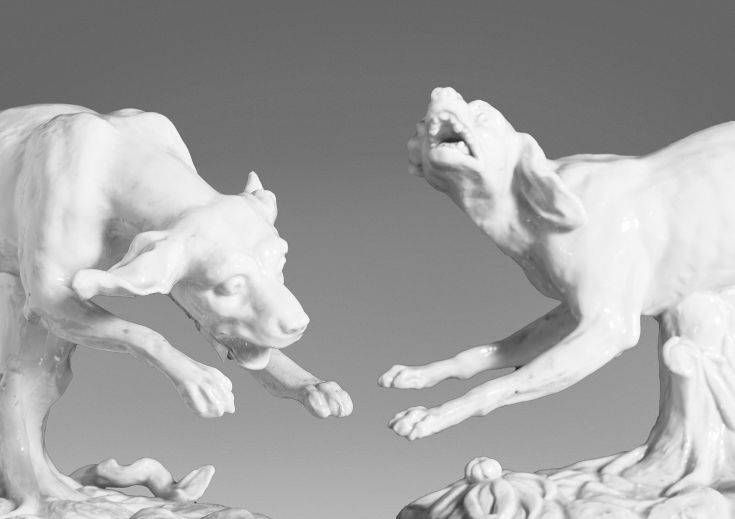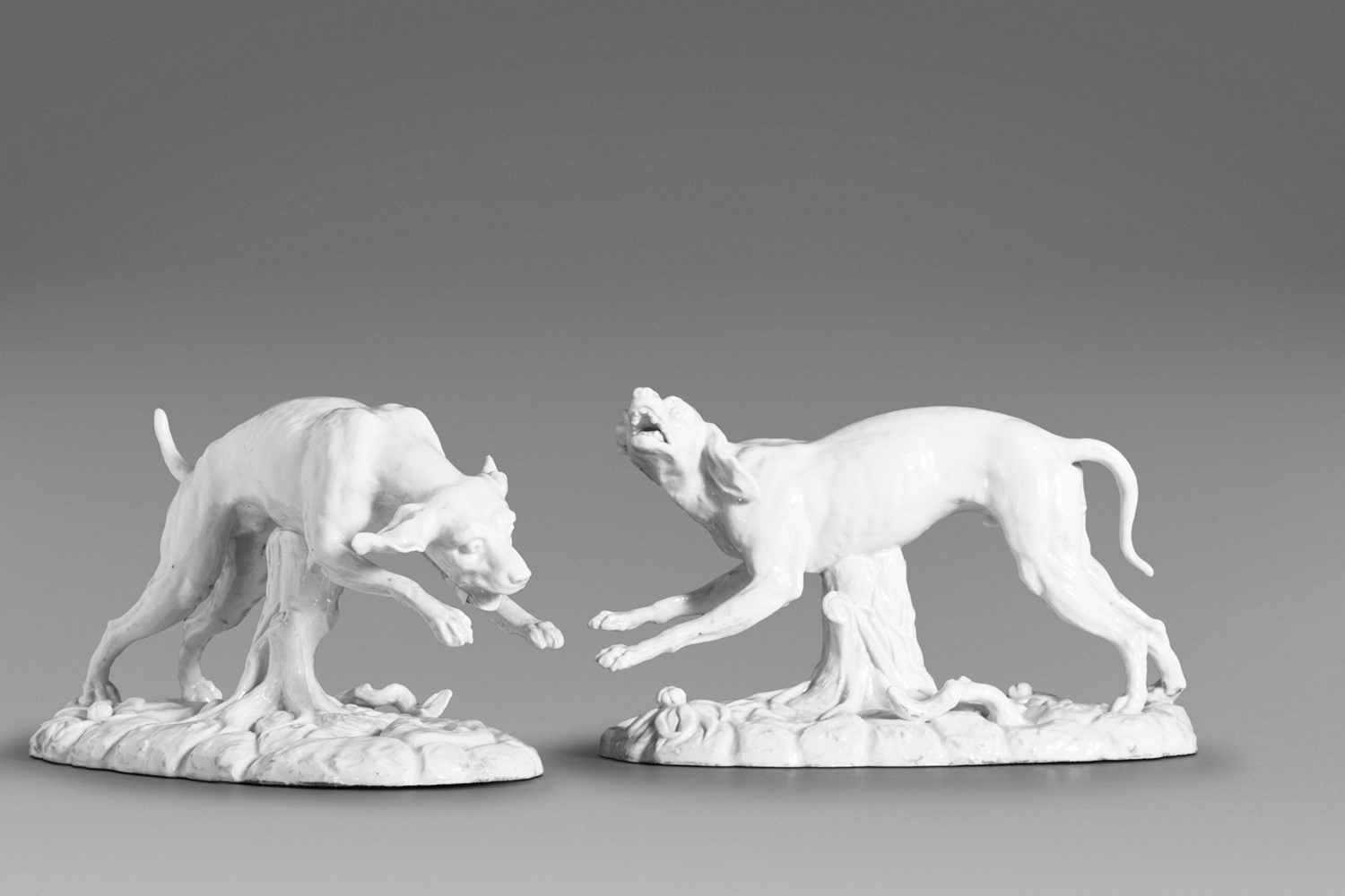 Coppia di cani in porcellana bianca di Capodimonte, secolo XIX