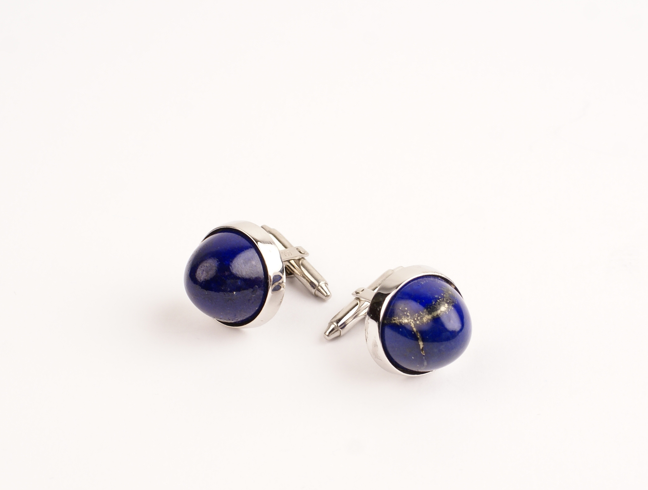 GEMELLI IN ORO BIANCO 18KT E LAPISLAZZULO taglio cabochon 12 gr.