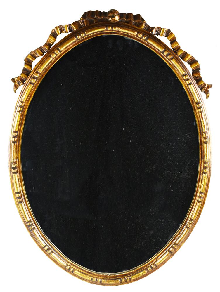 SPECCHIO in legno dorato sormontato da fiocco in legno scolpito e dorato cm...