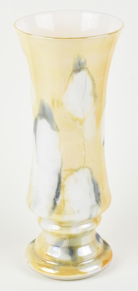 VASO in vetro opaliscente a forma di tromba con effetti dorati h cm 33