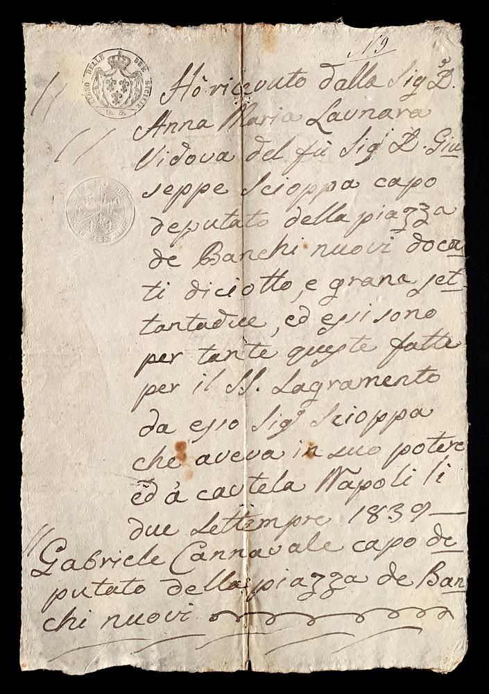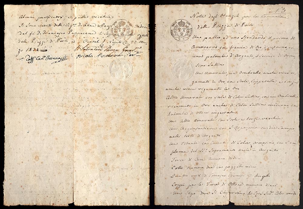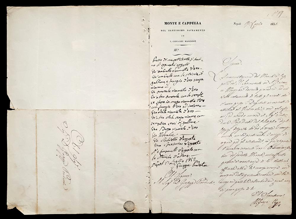 provenienti dall'archivio del Monte e Cappella del Santissimo Sacramento in San Giovanni Maggiore di Napoli