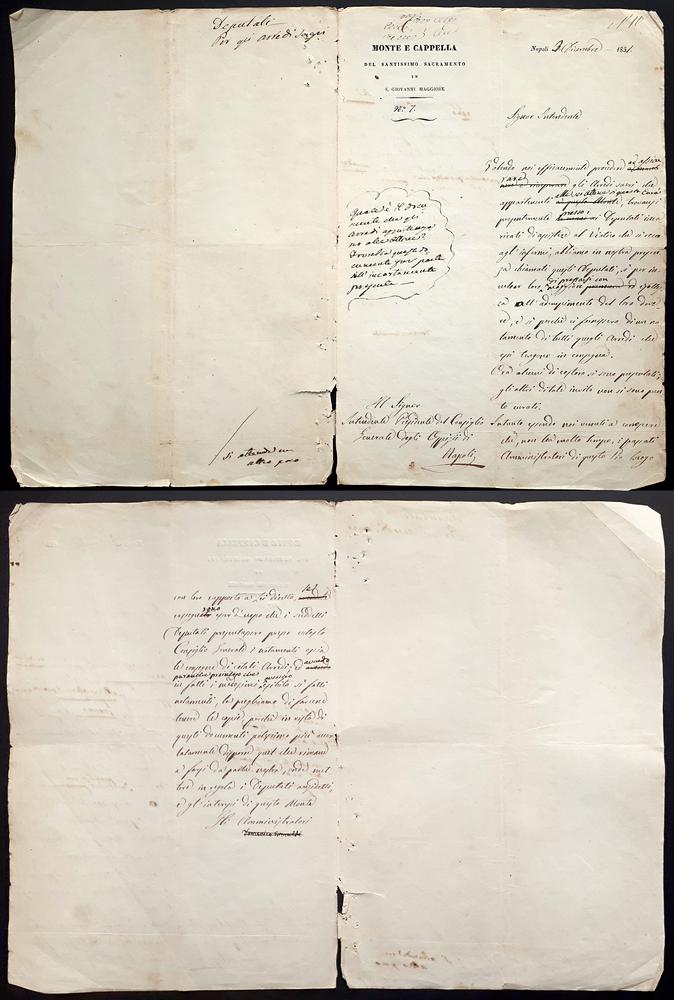 LOTTO DI LETTERE MANOSCRITTE provenienti dall'archivio del Monte e Cappella...