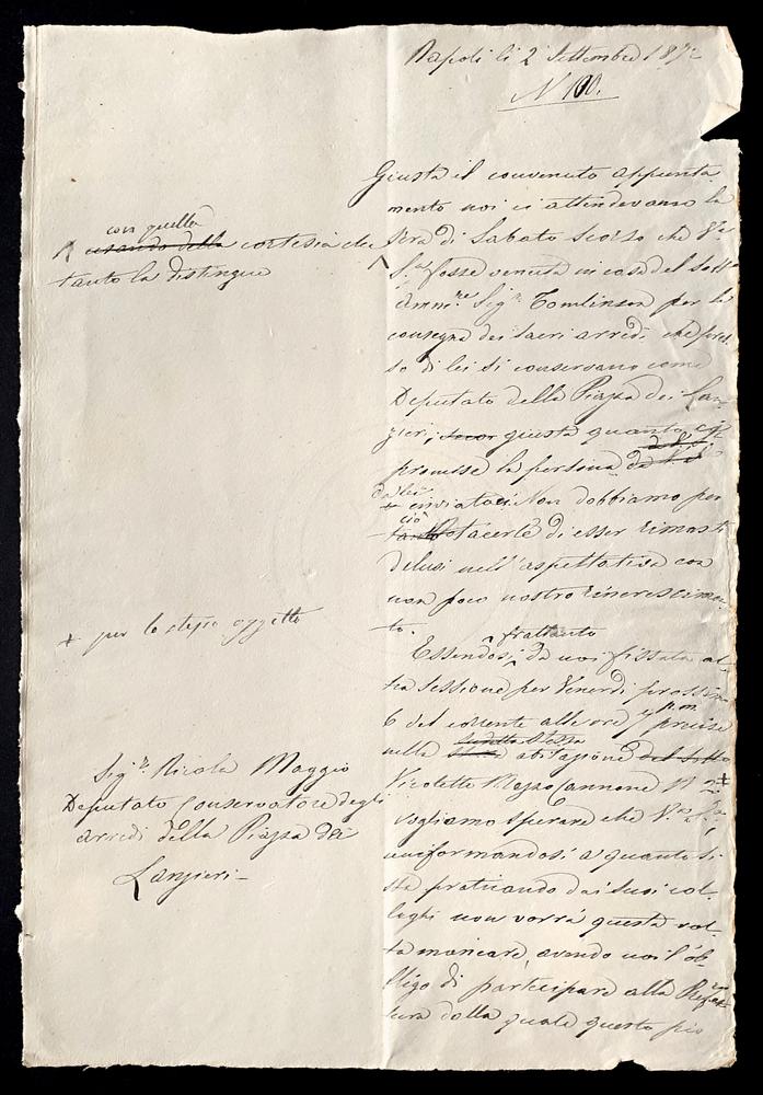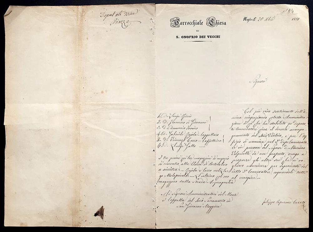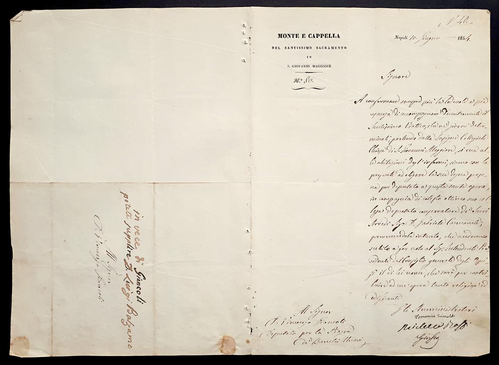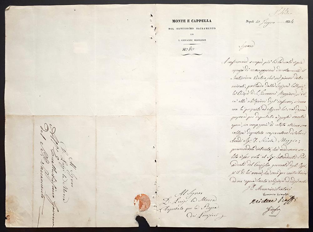 LOTTO DI LETTERE MANOSCRITTE provenienti dall'archivio del Monte e Cappella...