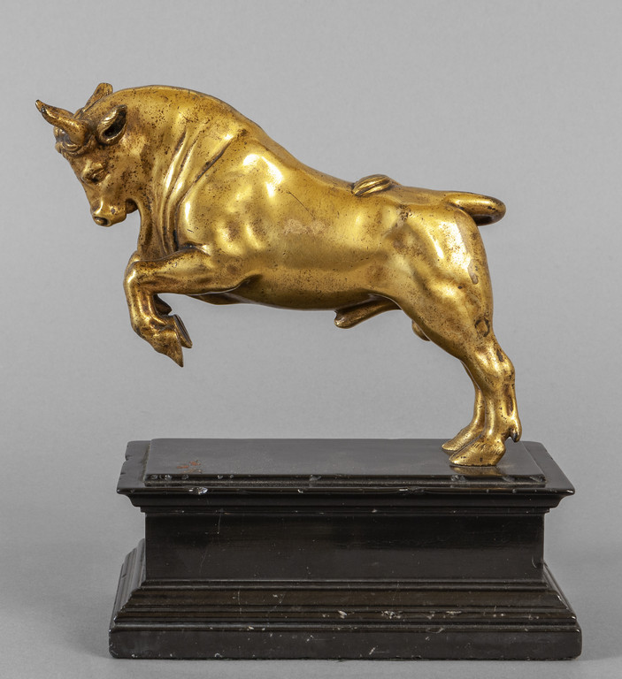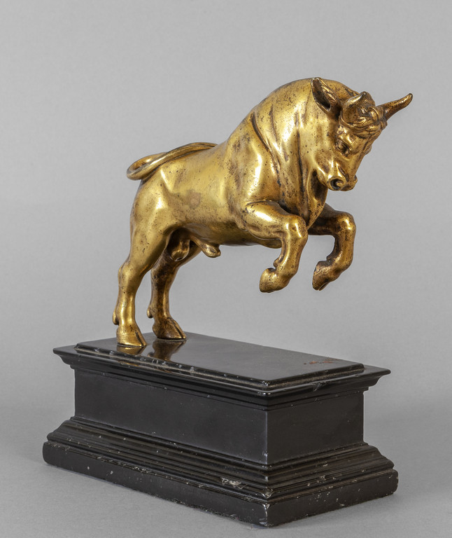 Toro rampante, scultura in bronzo dorato con base in marmo, sec.XVII