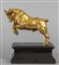 Toro rampante, scultura in bronzo dorato con base