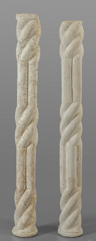 Coppia di colonne tortili e dritte da chiosco in marmo, inizi sec.XV