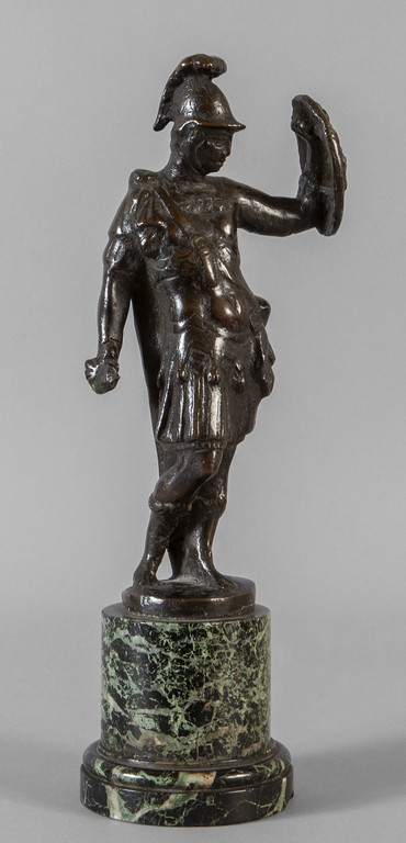 Marte, scultura in bronzo poggiante su base in marmo, sec. XVII