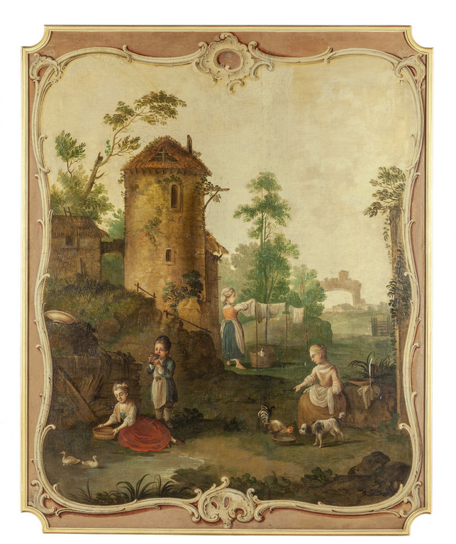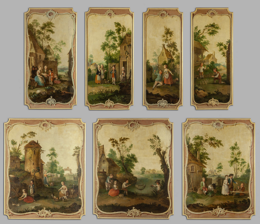 "Scene di vita contadina" sette grandi pannelli sagomati, Francia sec.XVIII