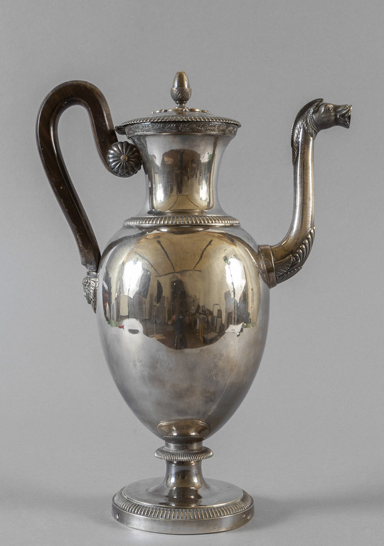 Grande caffettiera in argento sbalzato, punzone mauriziano con il delfino, Genova I metà sec.XIX