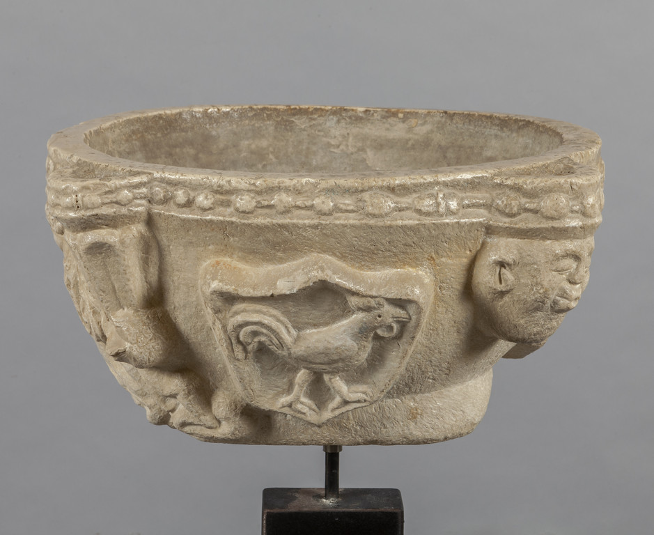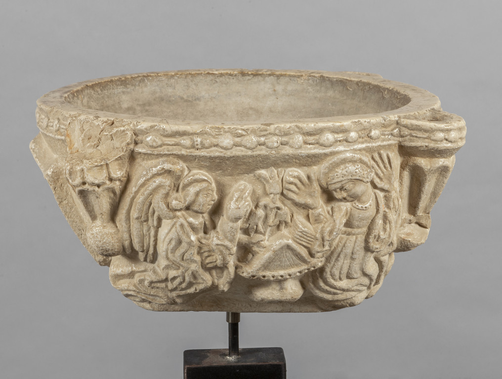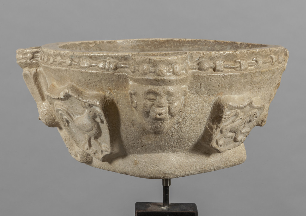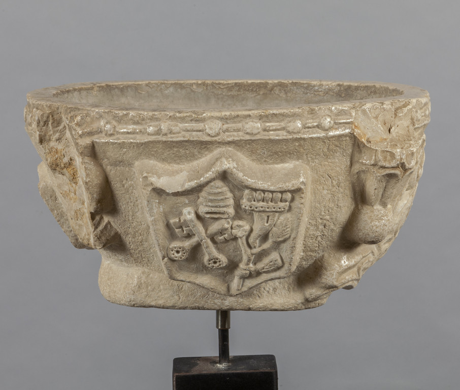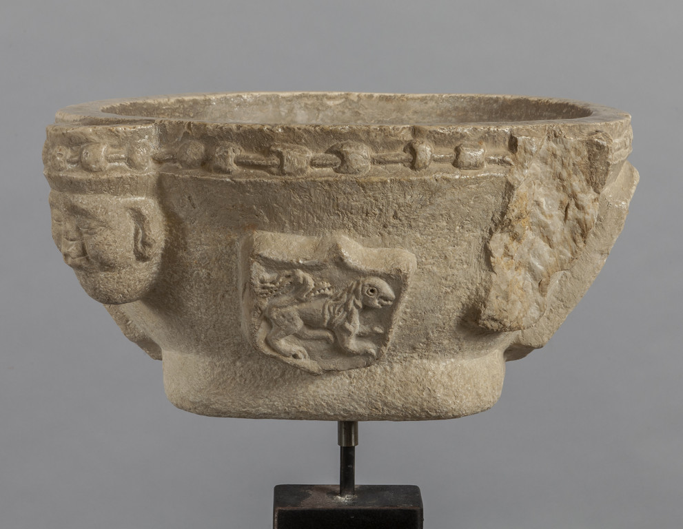 Mortaio in marmo botticino con stemma, Veneto sec.XIV
