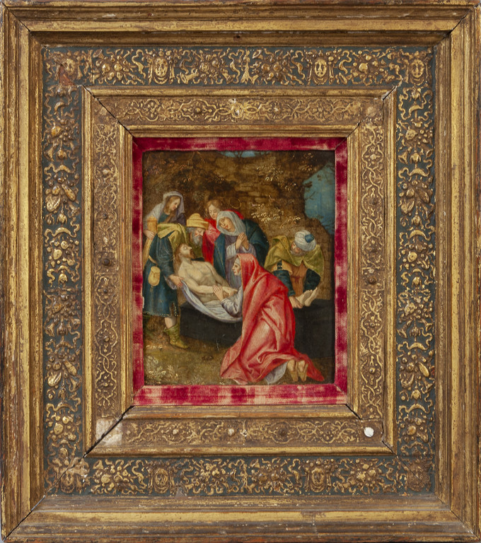 Scuola fiamminga sec.XVII "Deposizione" olio su