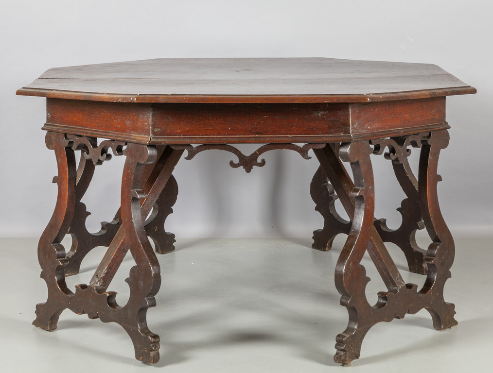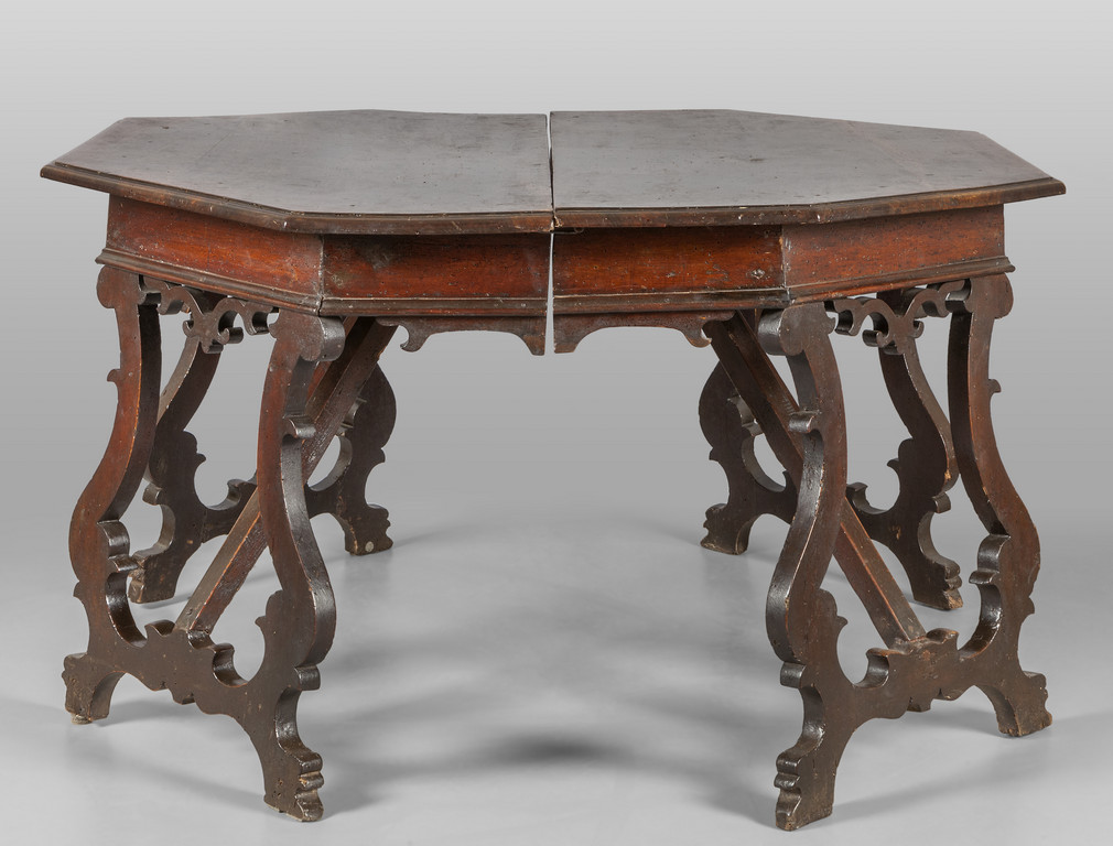 Coppia di mezzi tavoli in noce, Italia Centrale