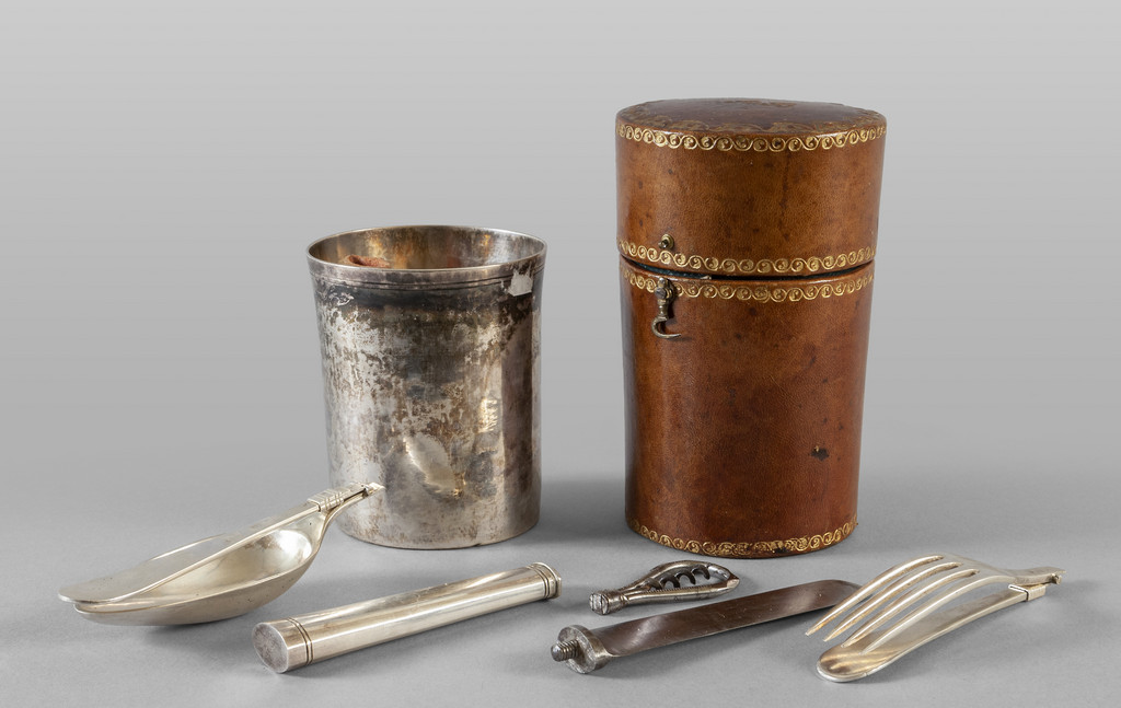 Necessaire da pic-nic in argento nella sua custodia originale, Roma inizi sec.XIX