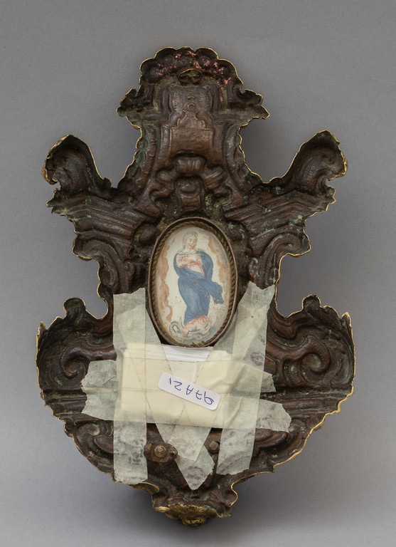 Acquasantiera reliquario in rame dorato, Roma metà sec.XVII