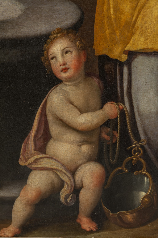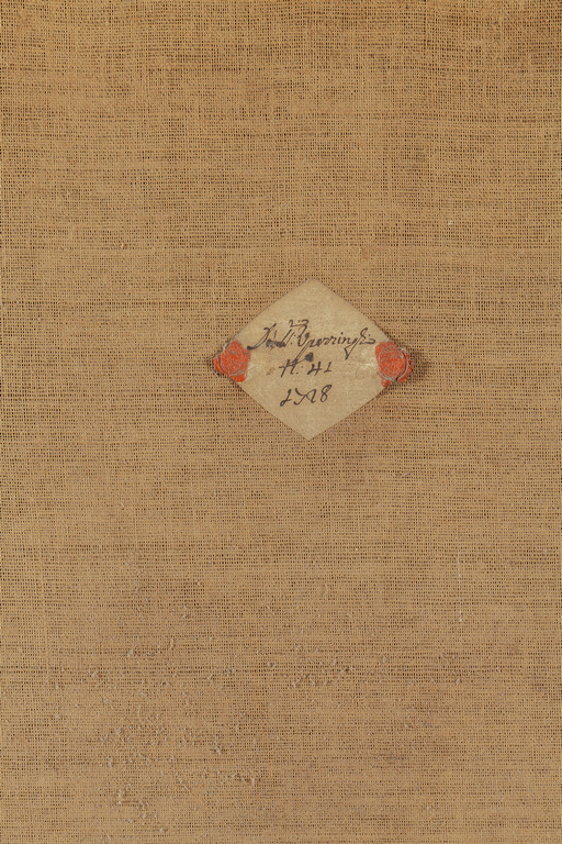Nel retro un cartellino di inventario n.41 indicante probabilmente la famiglia di provenienza e la data 1728, fissato con due differenti bolli in ceralacca.